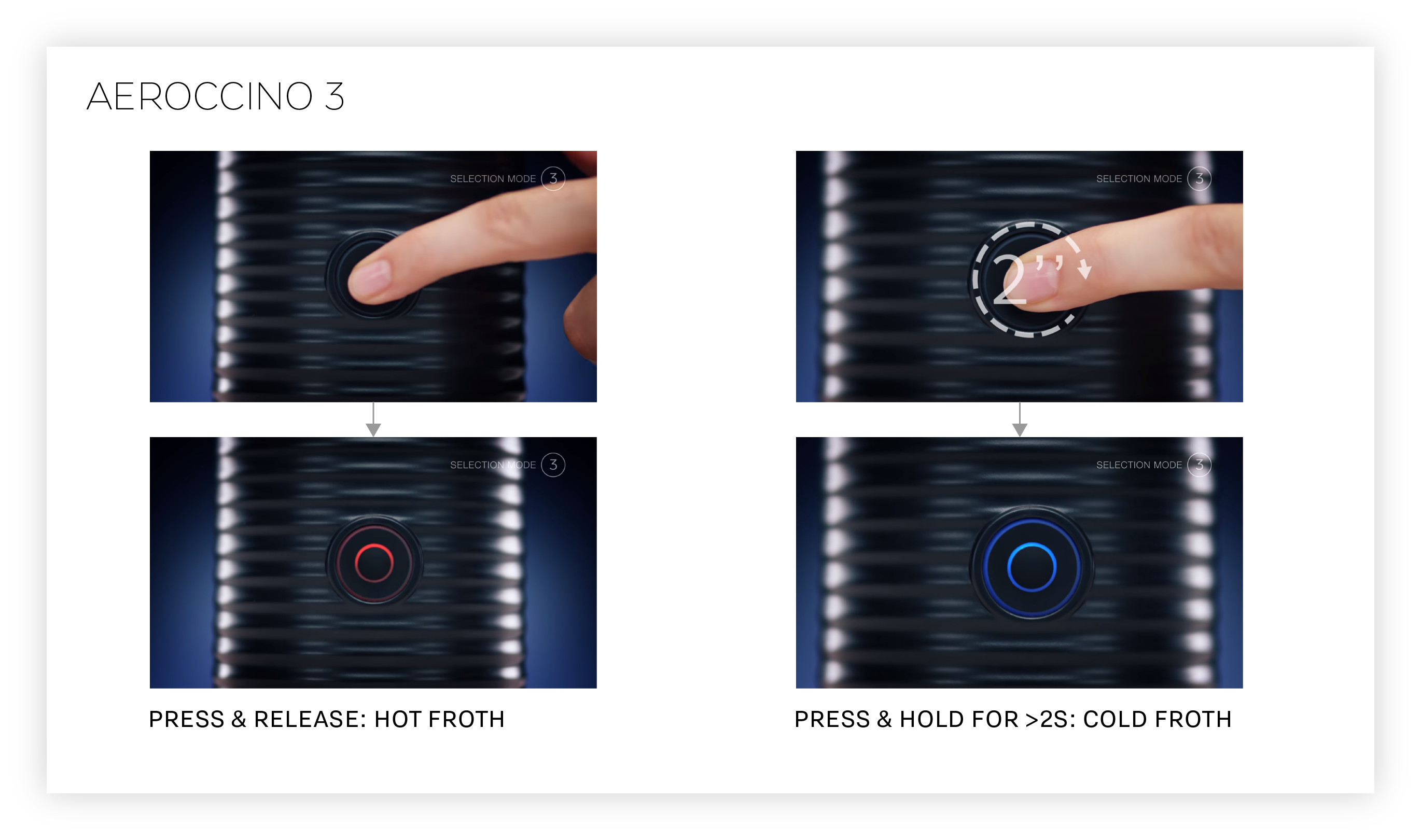Once we decided to automate as much of the interface as possible, we sought to translate the Prodigio experience to the Aeroccino.